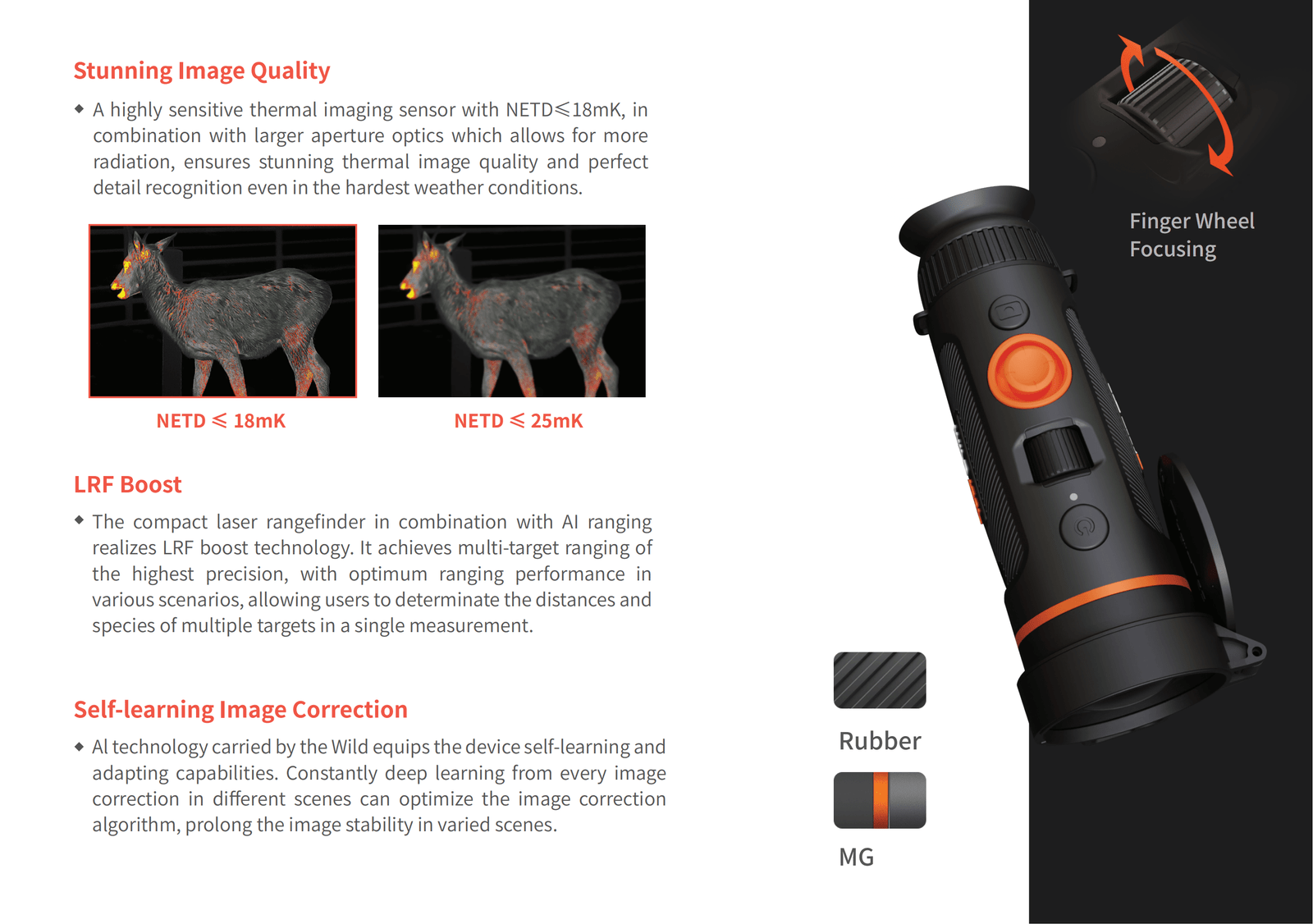 The Wild series is made of magnesium alloy, ensuring high structural strength with lightweight. The combined coating material of rubber prevents the device from being scratched and improves stability to meet long-lasting use.